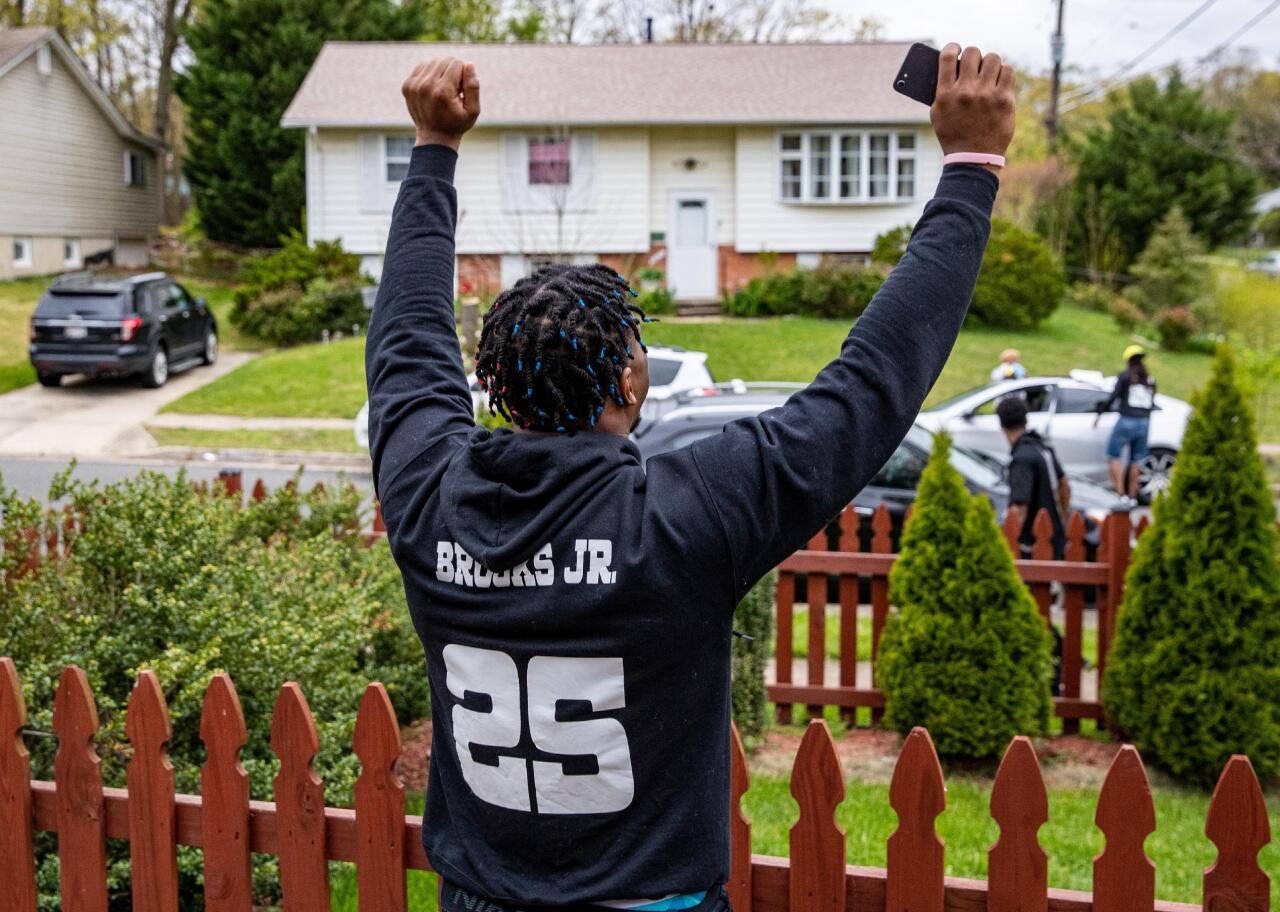 [Pictured: The Maryland Terrapins’ Antoine Brooks Jr. celebrates being drafted in the sixth round by the Pittsburgh Steelers on April 25, 2020, at home in Lanham, Maryland.]