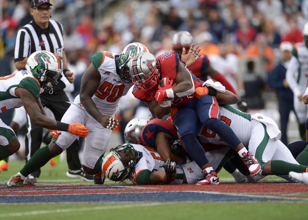 [Pictured: James Butler #28 of the Houston Roughnecks carries the ball against the Seattle Dragons at TDECU Stadium on March 7, 2020, in Houston]