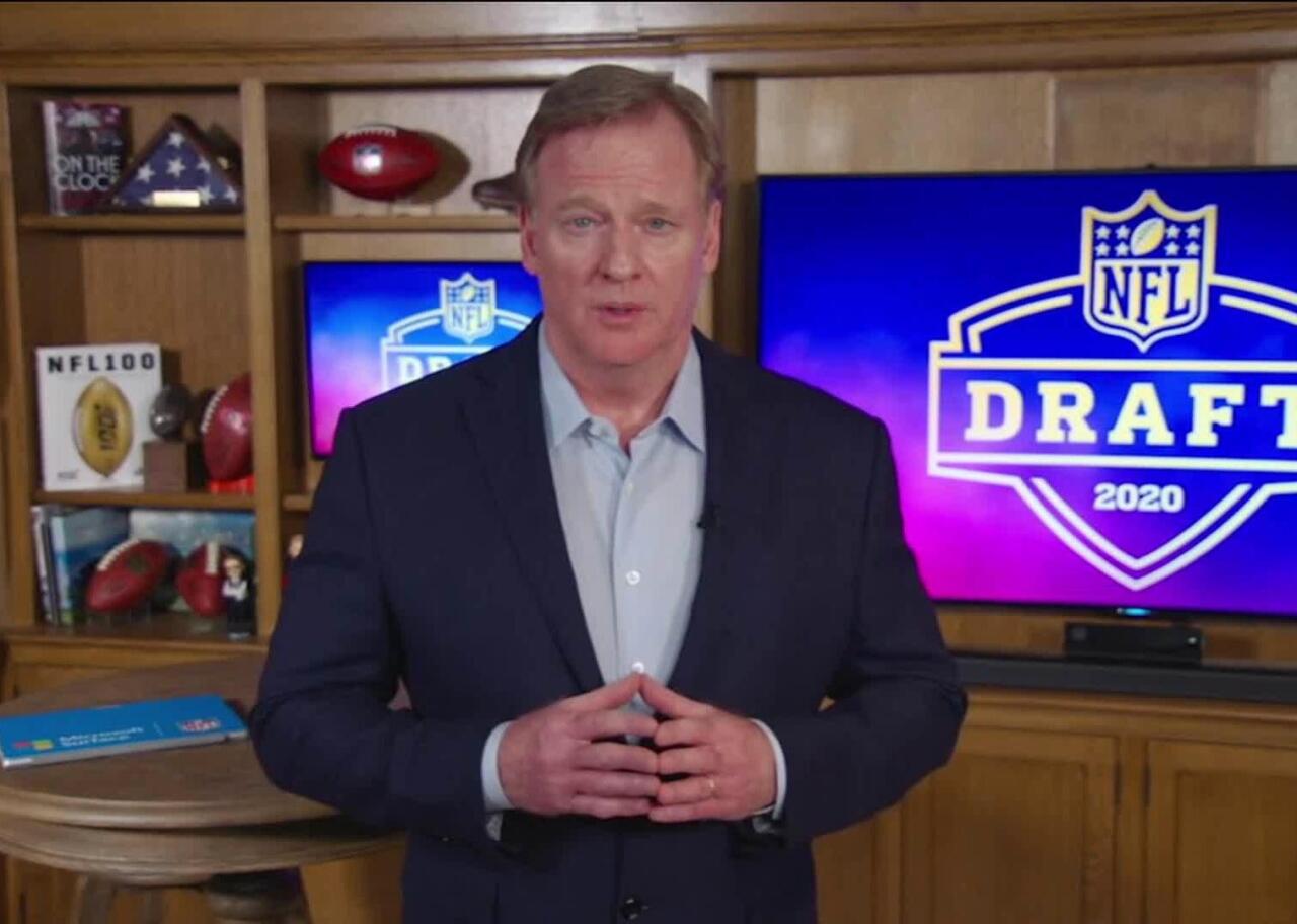 The 2020 NFL Draft, held remotely for the first time, drew a record 15.6 million viewers, according to Nielsen. Goodell read picks from his Bronxville, New York, home, and players and teams videoconferenced in.