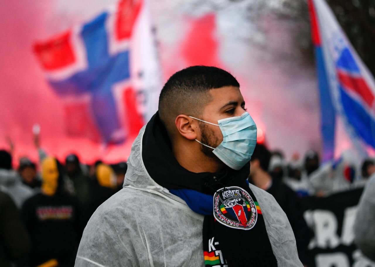 [Pictured: Fans of Paris Saint-Germain in front of the Parc des Princes for a Champions League match against Borussia Dortmund on March 11, 2020.]