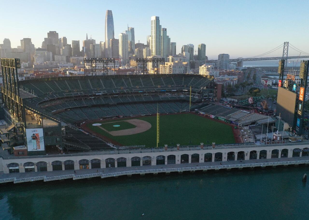 [Pictured: An aerial view of the San Francisco Giants’ Oracle Park on March 12, 2020]