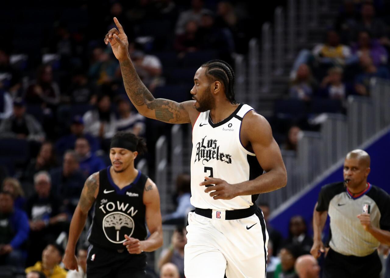 The Clippers have gone through several jersey changes, including script across the front of their jersey, capital letters, and an abbreviation. In 2015, the team introduced black to their jerseys, but red, white, and blue have always been predominant colors. The threads sported by Kawhi Leonard here are a new alternate version.