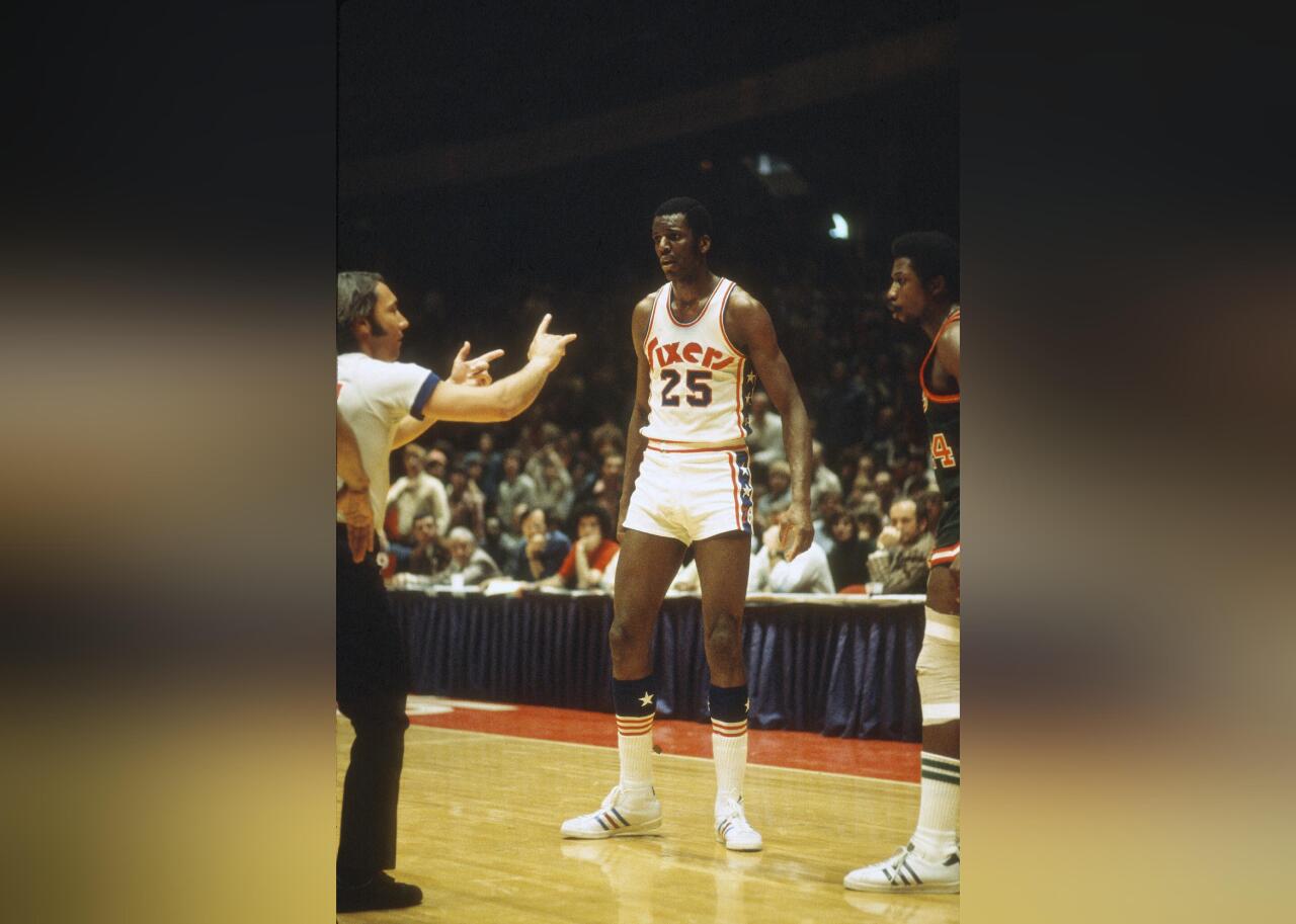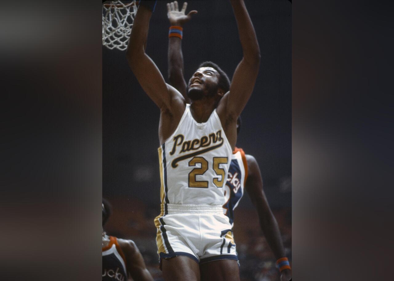 The jersey seen here is one of the rare times the Pacers had a scripted wordmark across the chest, as the team primarily has had capital letters spelling out their nickname. Billy Knight (pictured) was named an NBA All-Star during the Pacers’ first season in the league, in 1976–77.