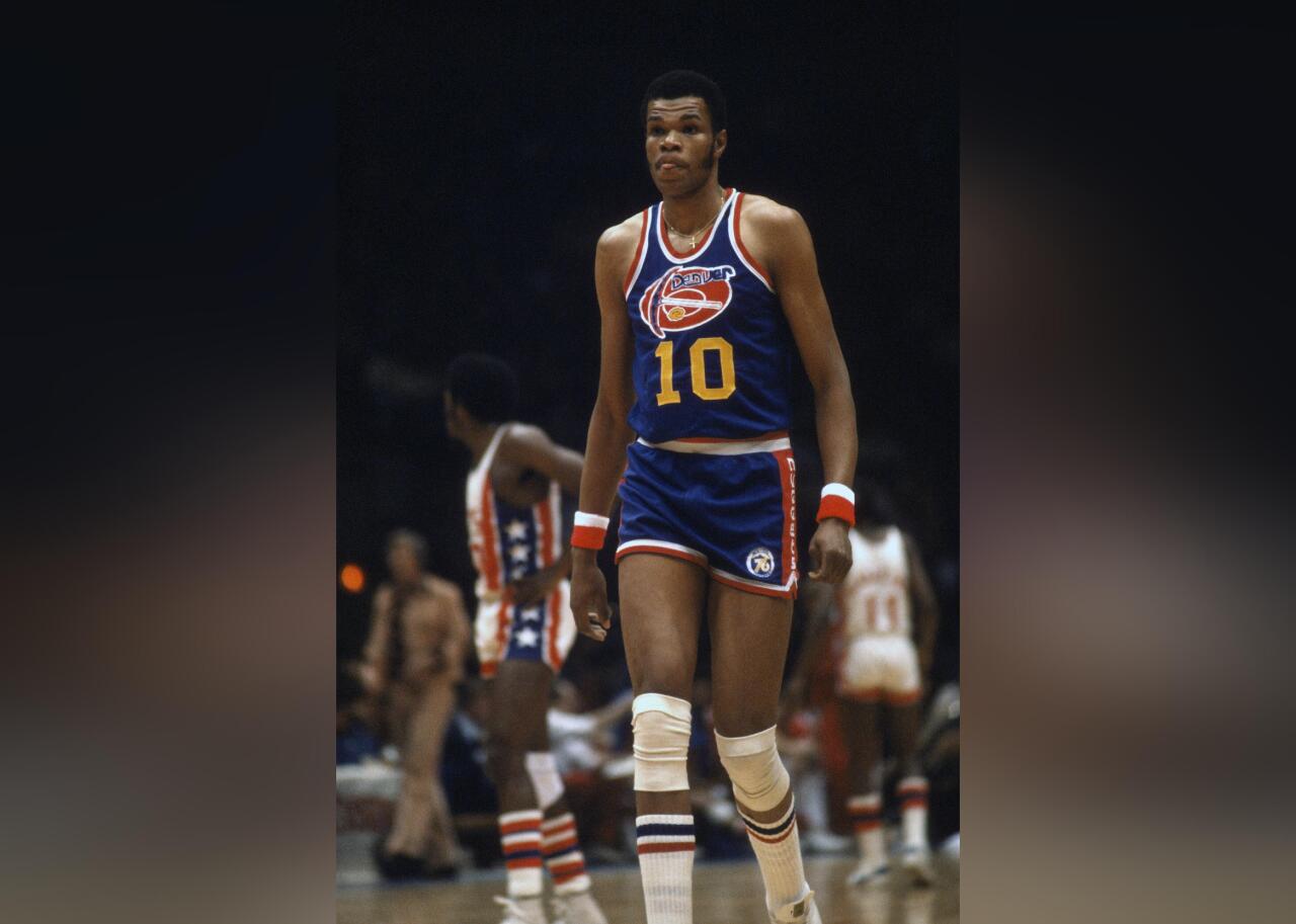 The Nuggets’ early jerseys played heavily off a mining theme, with a pickaxe prominently featured on the chest. Shades of red, yellow, and blue would pop up throughout the team’s history, which has been one of the more colorful journeys (jersey-wise) in the NBA.