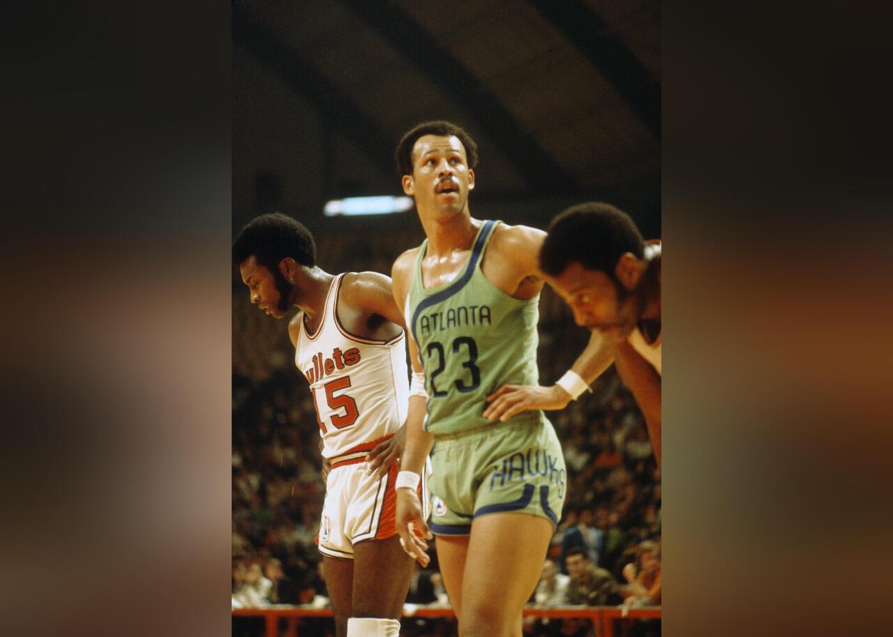 The classic Hawks jerseys worn by Lou Hudson (pictured) and Pete Maravich were drastically different from what we know today. Green and blue in what only can be described as a truly 1970s design vastly differs from the Hawks’ look of the past 30-plus years, which has been dominated by red. This blue style is also notable for including Maravich’s nickname “Pistol” on the back, instead of his surname.
