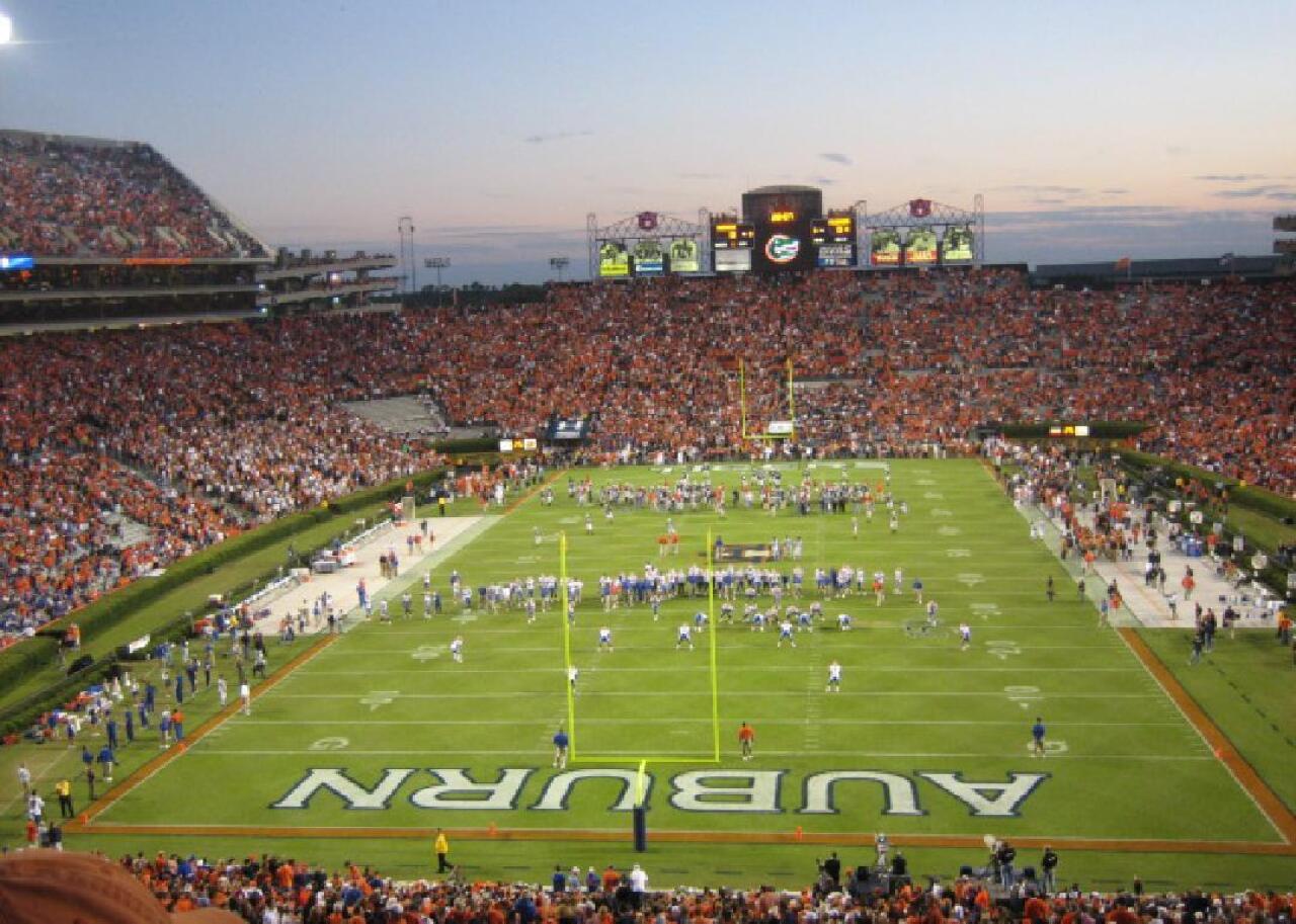 Fast facts: Jordan-Hare Stadium was named after Auburn’s winningest coach, Ralph “Shug” Jordan, and a member of its first team, president of the Southern Conference, and chair of the Faculty Athletic Committee, Clifford Leroy Hare. The field was named after legendary coach Pat Dye, who led the Tigers to four SEC titles in 12 seasons, in 2005.