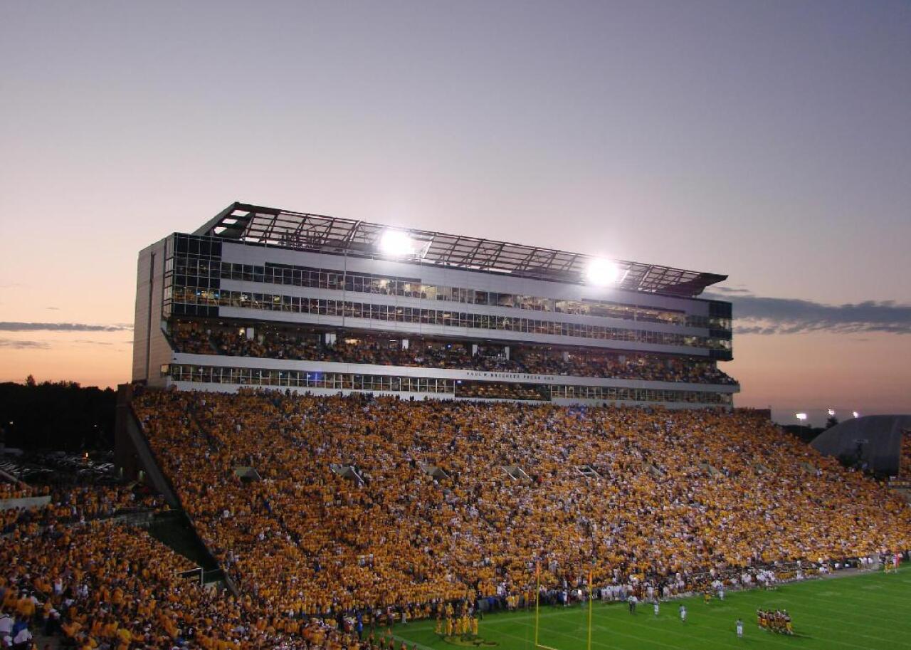 Fast facts: Mountaineer Field cost $22 million and originally seated 50,000. Renovations have added luxury suites and skyboxes. The Mountaineers have one of the coolest traditions in college football, as the team and fans sing John Denver’s “Take Me Home, Country Roads” after each home win.
