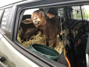 The woman told the trooper she was driving across the country with two goats in her vehicle – and said the goats were distracting her.