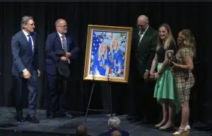 Burgum noted that Lamoureux-Morando and Lamoureux-Davidson are the first siblings inducted into the Hall of Fame and, at 32 years old, are also the second- and third-youngest individuals to receive the Rough Rider Award – only Roger Maris was younger.