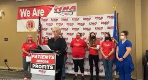 MNA President Mary Turner says nurses have met with hospital executives who have continued to refuse solutions to short-staffing… retention…and better patient care.  Turner says hospital CEO’s are earning million dollar salaries while nurses are understaffed and overworked.