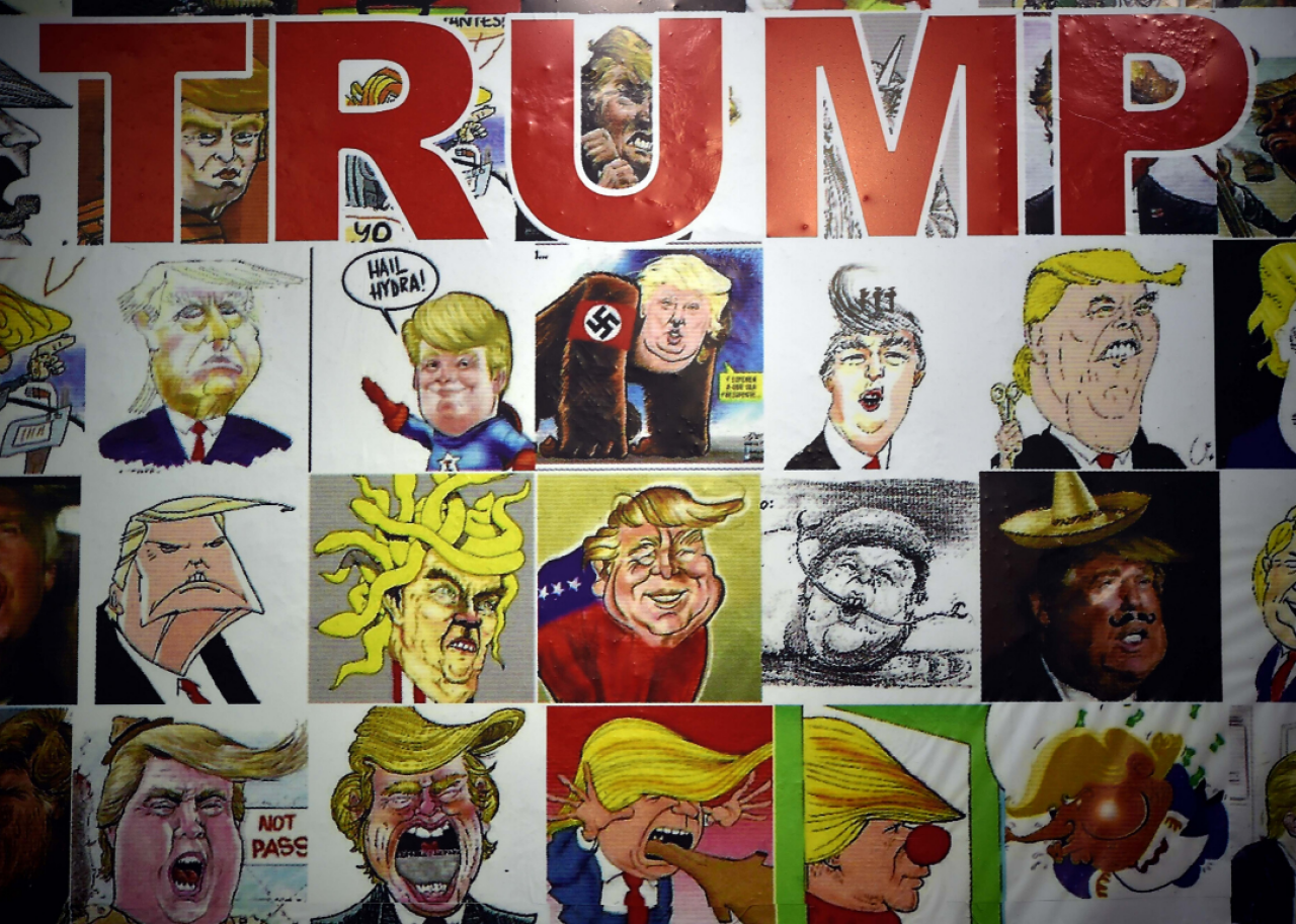 This wall is full of caricatures dedicated to then-candidate Donald Trump following a debate with Hillary Clinton. It’s an array of depictions from a country Trump has notably disparaged in the public arena.