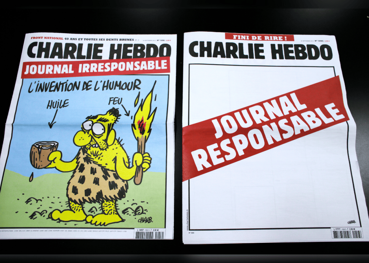 French satirical magazine Charlie Hebdo’s two covers for the same issue—Sept. 25, 2012—highlighted the fine line between freedom of speech and blasphemy. In 2015, the magazine was attacked by terrorists who also killed shoppers at a kosher grocery store. Seventeen people in total lost their lives.