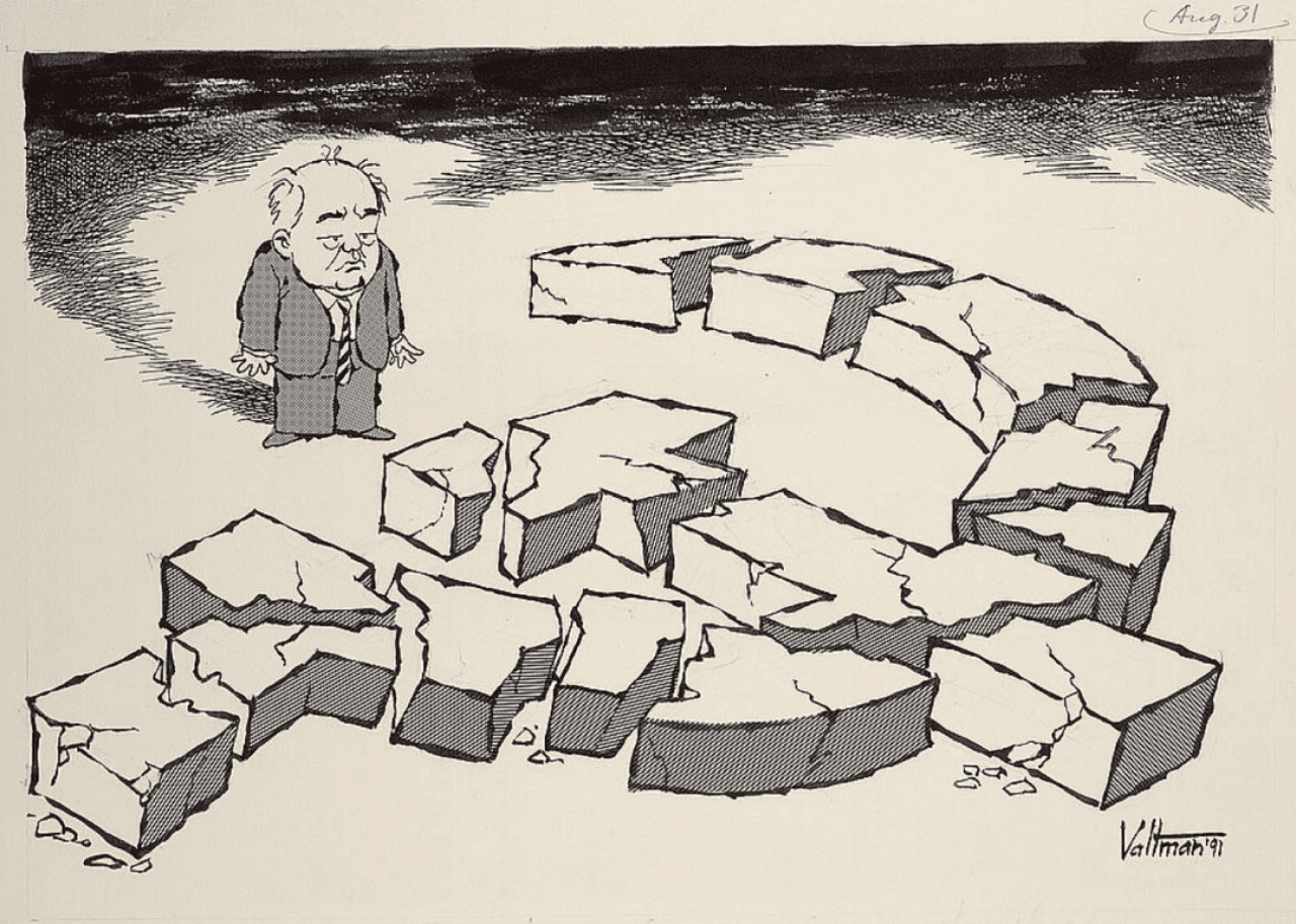 1991: ‘Gorbachev Beholds a Shattered Hammer and Sickle’