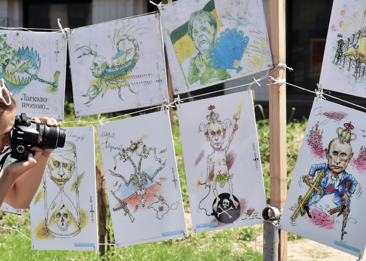 This photo by Sergei Supinsky shows a woman photographing journalist and artist Oleh Smal’s cartoons of Vladimir Putin. The exhibit was held on July 29, the same day the EU planned to impose economic sanctions on Russia for meddling in Ukraine.