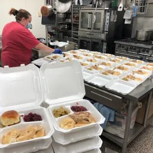 “As we have continued our model of serving takeouts at the front door of the Mission, rather than requiring people to come in the dining room to eat, I think the stigma of coming to the Mission for food is reduced and more people feel comfortable coming to get a meal, especially if they are feeding a family,” says Sue Shirek.