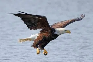 CENTERPORT, NY – JULY 29: An American bald eagle flies over Mill Pond on July 29, 2018 in Centerport, New York. (Photo by Bruce Bennett/Getty Images)