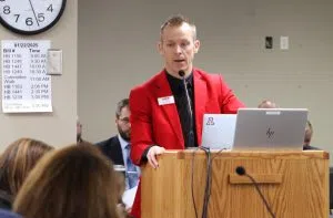 Josh Askvig, state director of AARP North Dakota, speaks during a committee hearing on digital currency kiosks. (Michael Achterling/North Dakota Monitor)