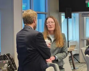 Carmen Simon, right, of Dakota College at Bottineau. State College. (Jeff Beach/North Dakota Monitor)