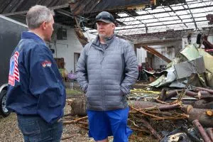 (KNOX) -Gov. Kelly Armstrong praised local leaders, first responders and community volunteers for their impressive response and recovery efforts as he surveyed damage from tornadoes and strong winds that pummeled a large swath of North Dakota last weekend.