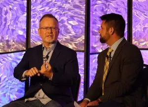 Interim Chancellor Brent Sanford, left. (Photo by Jacob Orledge/North Dakota Monitor)
