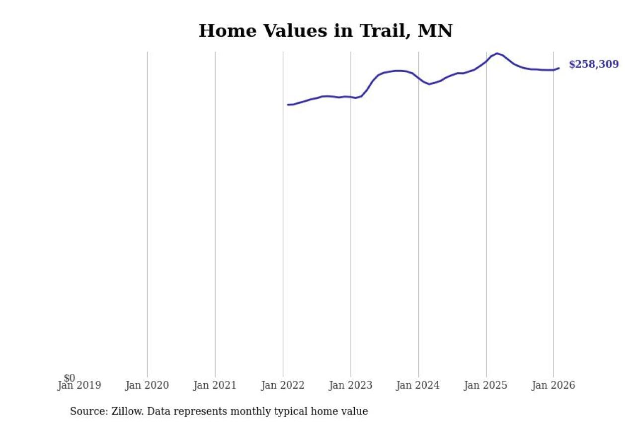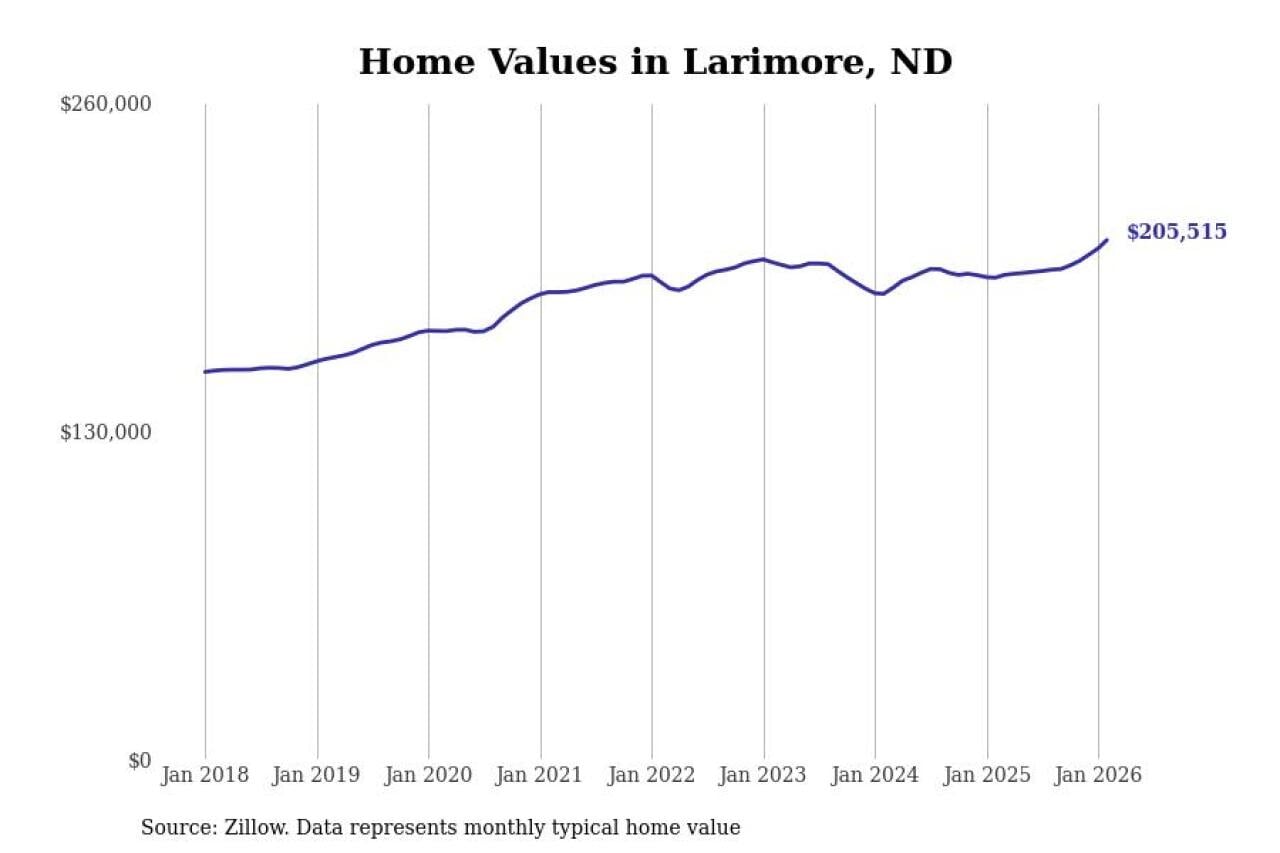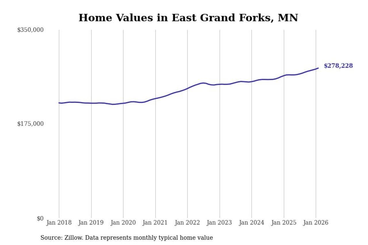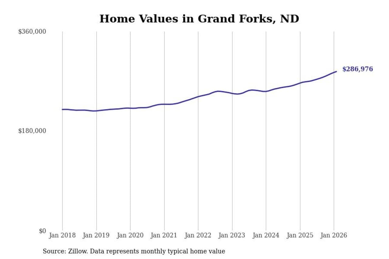 Stacker compiled a list of cities with the most expensive homes in the Grand Forks, ND-MN metro area using data from Zillow. Charts show the monthly typical home value since January 2018.