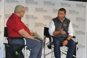 Agricultural economist John Newton, right. (Photo by Jeff Beach/North Dakota Monitor)