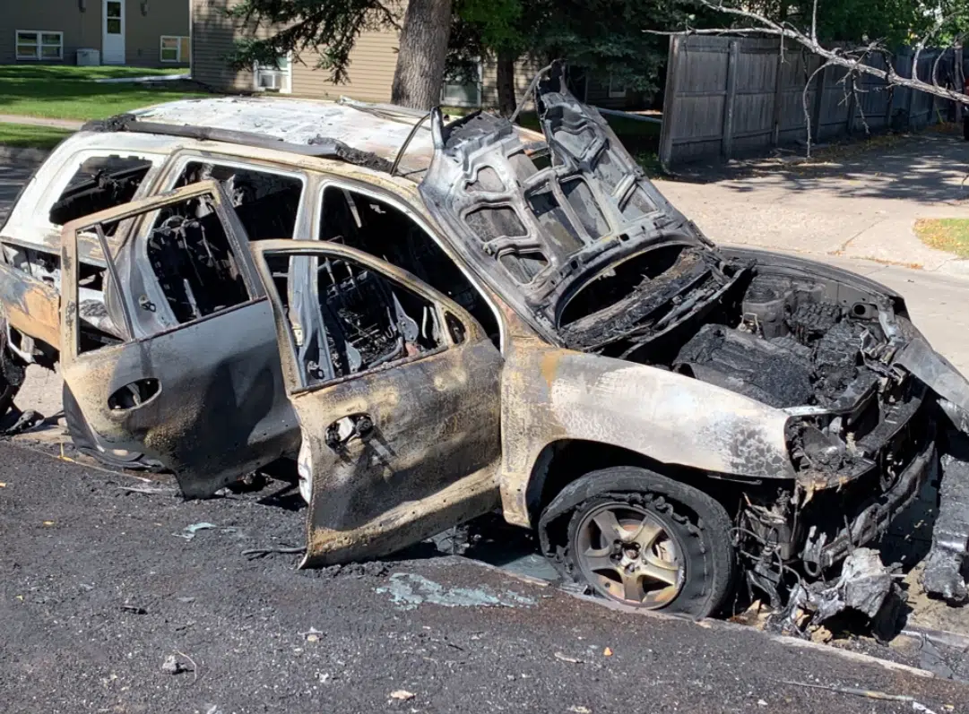 The Grand Forks Fire Department was called out this afternoon to extinguish a vehicle fire. The small car was fully engulfed in flames when crews arrived on scene around 1:15 p.m. The vehicle was park...
