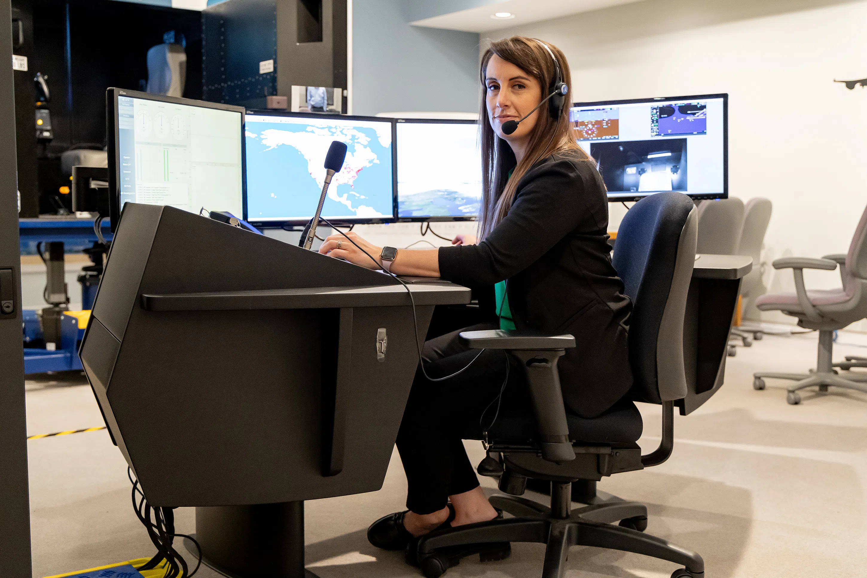 (UND) - Jennifer Watney, aerospace physiologist and registered nurse, is ready to help people affected by motion sickness. Photo by Adam Kurtz/UND Today. It's a familiar group of symptoms for many peo...